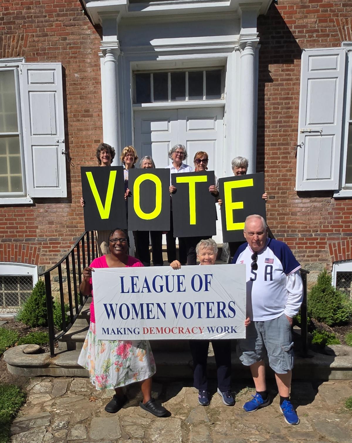 Editor's Note: The Voter is now only in this online format. It is printable, clickable and will be available at LWVCDC.ORG | | | Members of the Central Delaware County and Radnor Leagues who went to Summerseat, the historic home in Morrisville, Bucks County, of two signers of the Declaration of Independence and the U.S. Constitution on Sept. 20 to celebrate Constitution Day. | | |