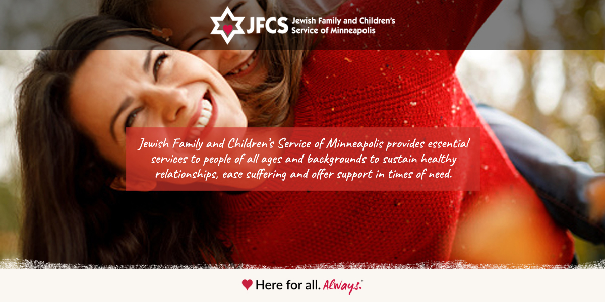 Jewish Family and Children’s Service of Minneapolis (JFCS) and Jewish Family Service St. Paul (JFS) are excited to announce they will unite as one organization with a new name, Jewish Family and Children’s Service of Minnesota.