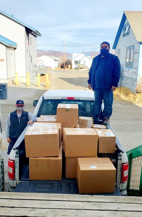 Courier Benny Piscoya and Accounting's Rick Outwater team up to prepare boxes full of hygiene and disinfectant supplies to our village staff. Quyaana guys!