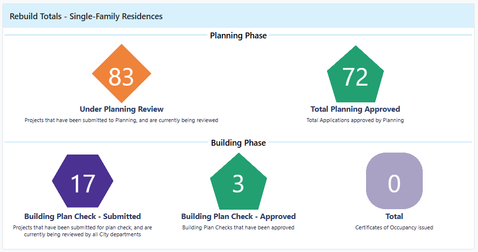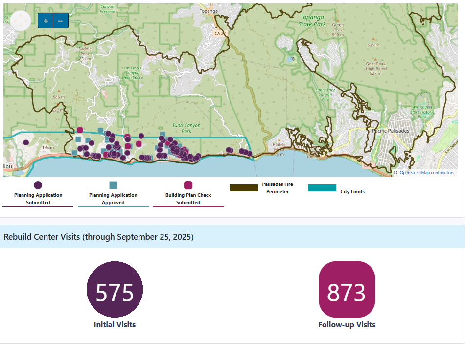 | | | PALISADES FIRE REBUILD DASHBOARD | | MORE INFORMATION & RESOURCES | | | | |