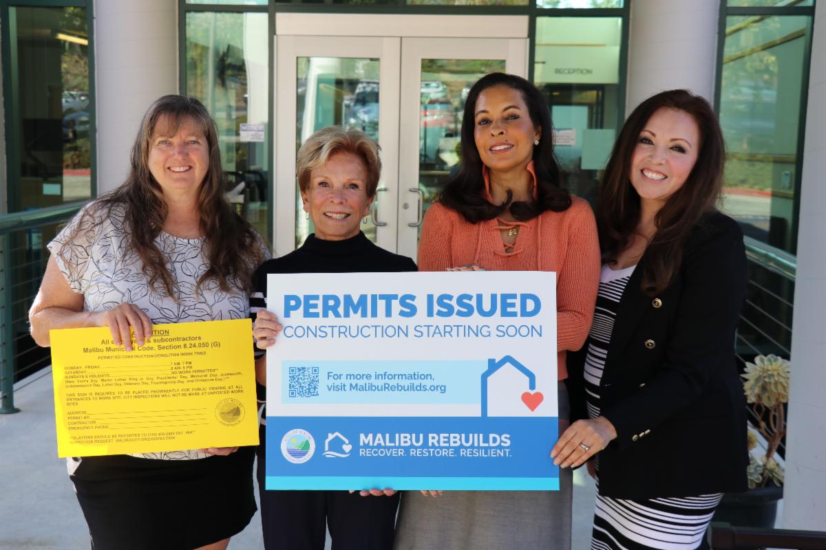 The City of Malibu is proud to announce that the third rebuild permit has been issued to a homeowner who lost their house in the Palisades Fire. To celebrate this milestone, Mayor Marianne Riggins and Interim City Manager Candace Bond presented the homeowner with a Malibu Rebuilds yard sign. Each rebuild represents meaningful progress in supporting families on their path back home.