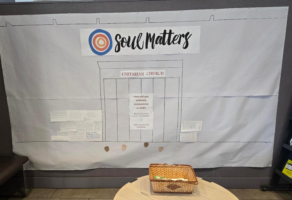 Have you noticed the Soul Matters interactive display in the lobby? Each month, you can engage with our Soul Matters theme by following the prompt on the wall by the book display. In November, our theme is Nurturing Gratitude. Write your thoughts on a paper leaf to hang on the tree next to the display.