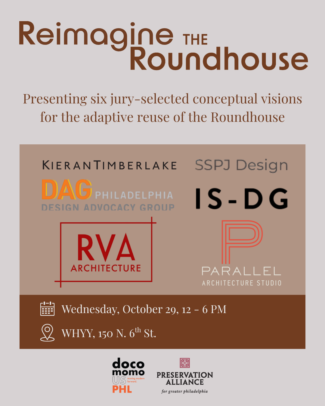 | | A Symposium Looking at Reusing, Repurposing, and Reinvigorating the Roundhouse | | We’re excited to share that six design teams have been selected to present their adaptive reuse concepts for Philadelphia’s iconic Police Administration Building at The Roundhouse Reimagined symposium, co-hosted by Docomomo PHL and the Preservation Alliance for Greater Philadelphia. | | |