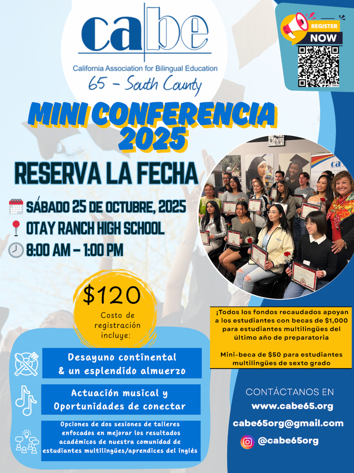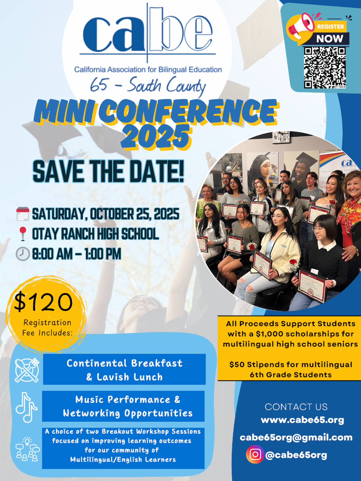| | Upcoming professional learning opportunities.... | | 2026 Multilingual Educator Call for Ads... | | Meet Team Member Elizabeth Orozco... | | | | Elizabeth Orozco, the youngest of four siblings, grew up in Córdoba, Veracruz, México, in a family that blended Italian and Mexican heritage. Her Bis Nonni (grandfather) was one of the founders of the Italian community of Colonia Manuel González. While her great-grandparents spoke Talian, a dialect of Italian, they chose not to pass the language on to their children as they adapted to life in Mexico—something Elizabeth regrets today, as she has a deep interest in learning Italian as part of her heritage. | | Her father, a first-generation Italian Mexican, owned a transportation company, and her mother was a full-time homemaker. Her parents placed a strong value on education and enrolled their children in the best private schools in their hometown. Elizabeth attended a bilingual Catholic girls’ school where her parents actively served as school presidents, modeling parent leadership in education. Inspired by this example, she began volunteering at Encuentros Juveniles, where she organized workshops and retreats for youth, experiences that helped her discover her own leadership voice. | | In Mexico, Elizabeth earned a B.A. in Business Administration and held various roles, including administrative assistant, sales manager, general manager, and legal representative, for different companies. At the age of 28, Elizabeth met her future husband online. After several international visits and after meeting in person for just nine days and a year of online conversations, they were married. She moved to live in Tijuana for three years and later to Perris, CA. She stepped away from professional work to focus on raising their two children, while continuing to be active as a parent leader and supervision aide at their school. When her daughter was in second grade and her son was in fifth grade—having just been reclassified as English proficient—Elizabeth was invited to participate in CABE’s Project 2INSPIRE. She recalls, “I fell in love with Project 2INSPIRE! It was like magic! I learned so much about this educational system that I hadn’t been previously aware of. As my children were both English learners, I understood the importance of the EL program and wanted to do more for the other parents at the school.” Her CABE mentor and trainer soon encouraged her to join the program as a part-time specialist. “She asked me, ‘Can you see yourself teaching other parents?’ and my answer was an enthusiastic ‘Yes!” | | Through her work with CABE, Elizabeth discovered a passion for teaching and public speaking that she had never considered before. She recently celebrated a major milestone in earning her preliminary clear California teaching credential, a testament to her commitment to learning and leadership. After six years of part-time service, she joined the team full-time through CABE’s work with the statewide Community Engagement Initiative. When asked what motivates her, Elizabeth explained, “I believe in the transformation of our school system through our families and their expertise. There’s a powerful ripple effect when the parents that I train go on to train other parents as leaders. That’s when the magic comes full circle.” She often reminds parents that while their primary goal is to guide their children toward their dreams, the true journey begins when they recognize and pursue their own dreams as well. She always says that we came to this world to inspire and be inspired | | Outside of work, Elizabeth cherishes time with her husband, Eloy, a Senior Systems Engineer, and their two children. Jorge Julián (21) is studying to become an aerospace engineer and is in the process of transferring to Caltech Pomona while taking pilot lessons. Savannah Elay (18) is a sophomore at UC Riverside, majoring in financial business and English. The family shares their home with two pets: Hemi, a Chihuahua mix, and Ludo, a Maine Coon cat. Elizabeth finds balance through her love of the outdoors—whether spending time at the beach, hiking with her family, or enjoying her daily 20-mile bike rides that she calls her “me time.” Looking ahead, she hopes to continue studying French and fulfill her dream of finally learning Italian, a language that ties her more deeply to her roots. | | Here's what's going on at local chapters... | | Here are two articles featuring CABE Pepperdine... | | Other items of interest to the CABE community... | | |