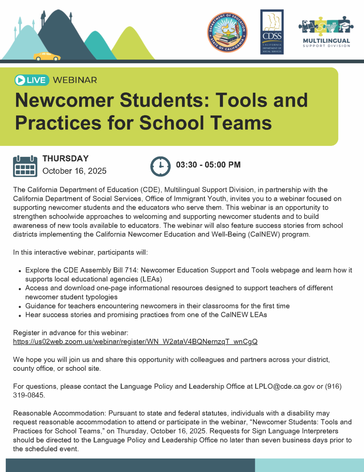The deadline for submission of applications is October 30, 2025. Please forward this information to all qualified candidates who might be interested. Any questions related to this review should be directed to Kyle Petty, Lead Consultant, at kpetty@cde.ca.gov.