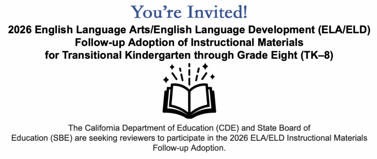 Reviewers will be trained to utilize the Guidance to support the adoption and implementation of ELA/ELD instructional materials, approved by the SBE in November 2025, as well as grade-level standards maps and evaluation criteria map that were approved by the SBE in 2015.