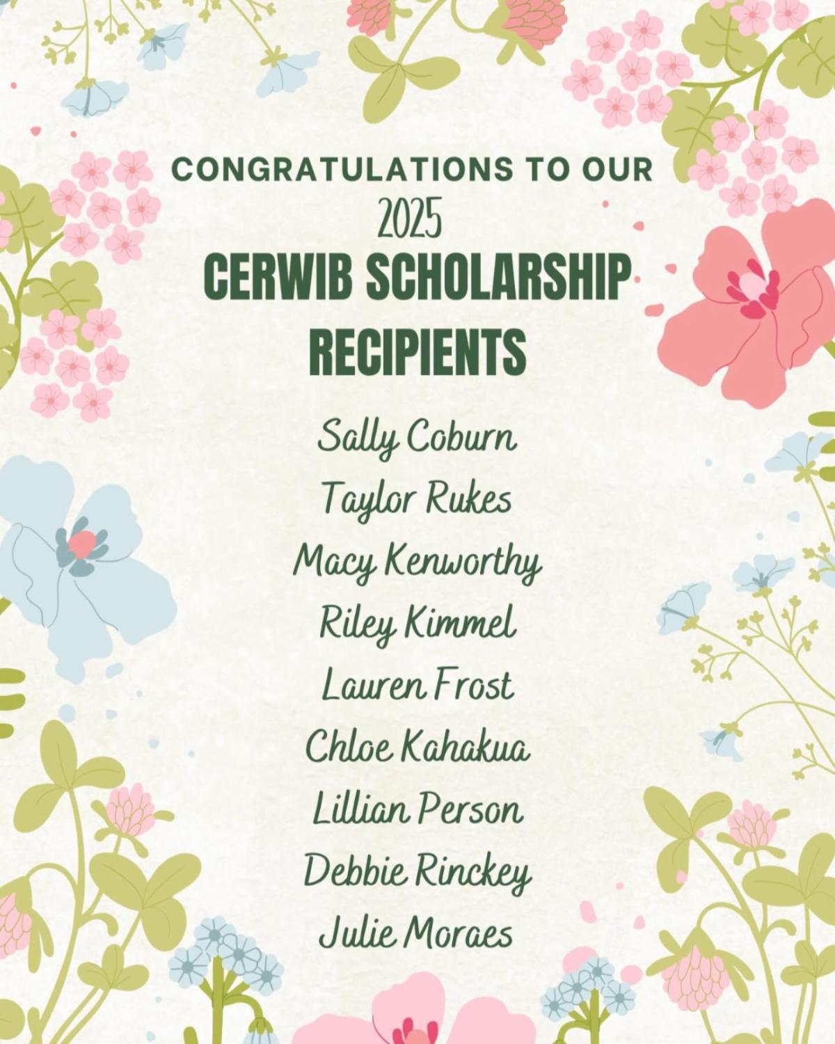 | Join us for an evening social mixer! Gather with other ladies in the community and chat about business ownership, life, and everything in between! We will have space reserved, food/drinks will be your own responsibility. Feel free to bring a friend! You do not need to be a CERWIB member to attend. | It's early renewal time! Register or renew now for the 2026 Membership Year and be entered to win CASH! Anyone who registers/renews in October or November will be entered to win one of two $50 cash prizes! New Members who register now for 2026 can start enjoying member benefits today! | Congratulations to our 2025 Scholarship Recipients! | |