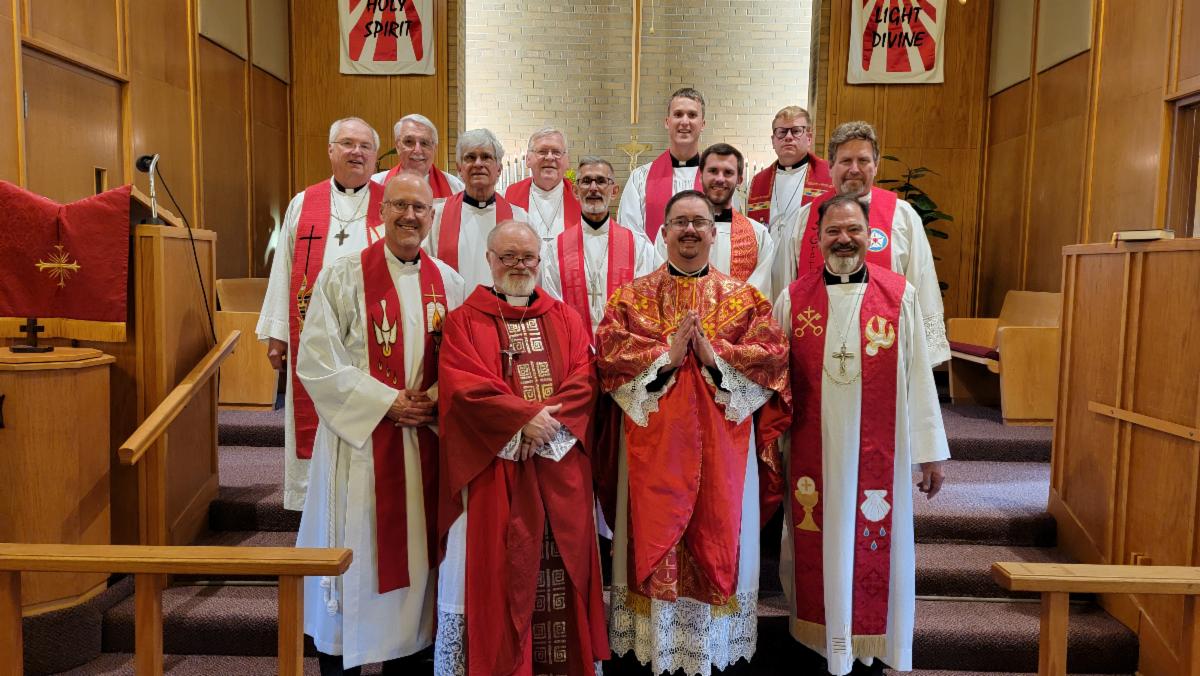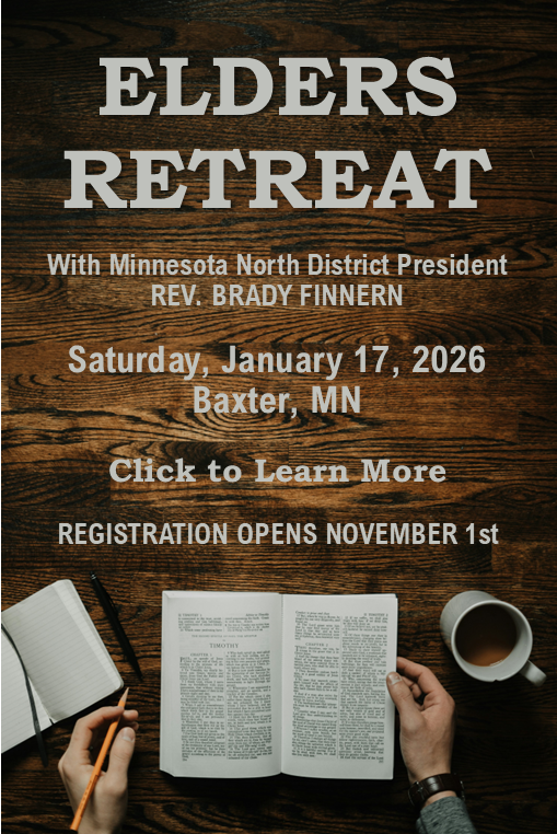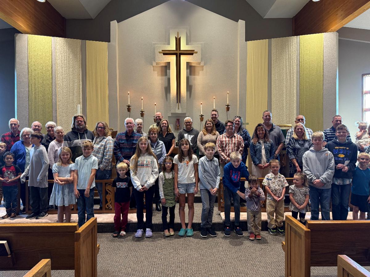 Rev. Benjamin Hollingsead was installed as pastor at St. John Lutheran Church in Aitkin on Sunday, September 7, 2025. Pictured are back row: Rev. David Becker, Rev. Ron Carnicom, Rev. Mark Johnson, Rev. Bill Traphagan, Rev. Travis Lauterbach; middle row: Rev. Frank Milo, Rev. Rick Hans, Rev. Nathaniel Konkel, Rev. Don Klatt; front row: Rev. Gregg Coop, Rev. John Thomson, Rev. Ben Hollingsead and Rev. Bruce Timm. |