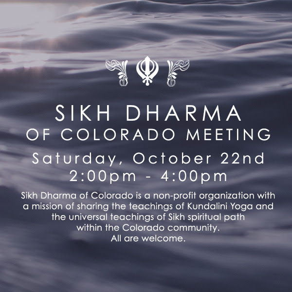 calmingkids.org), another Boulder non-profit, in bringing yoga into the schools and teaching adults how to teach yoga to kids. Finally, there is a new group, open to anyone interested in Kundalini Yoga and Sikh Dharma, called Sikh Dharma of Colorado (SDCO, website coming soon). We meet regularly (next meeting is October 22 at Raj Yoga, 2-4 pm). Under the umbrella of SDCO, I'll be offering a free kirtan event with live music, along with my Sikh friend recently re-located from LA, Simran Kaur, on November 12 (also at Raj Yoga, 7 - 9 pm.) We are planning to offer 11 of these events, and our November evening will focus on the life and teachings of Guru Nanak, the first Sikh Guru. Each evening will focus on a different Sikh Guru, and we are hoping to involve the Sikh community from Denver as much as we can. All of these opportunities to share my gifts, grow my experience, and use my intuition to co-create, allow me to let go and open the door for new adventures!