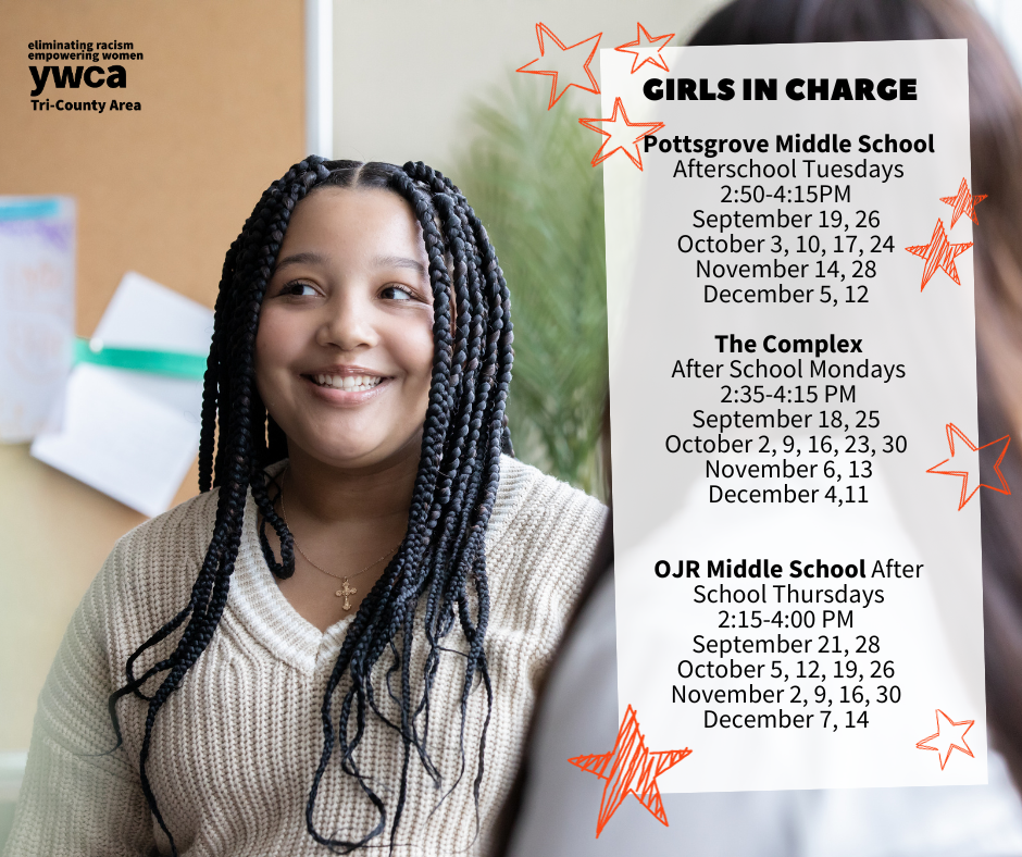 Girls In Charge is open to girls in 6th-8th grade looking to build confidence, practice healthy habits, and plan for a bright future.