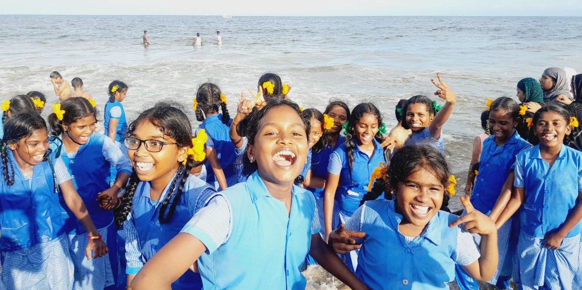 Pictured Above: 7th and 8th grade students from Siloam Boarding Home frolic in the Bay of Bengal! On October 12, 65 students went on a field trip to Pondicherry, visiting the Dr. Abdul Kalam Science Center & Planetarium and Pondy Marina Beach.