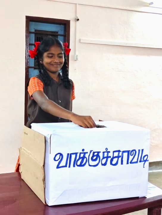In the most recent election at Melpattambakkam, Anisha was selected as president and Janani was selected as vice president. The new leaders will follow up with their classmates to see how they can support them.