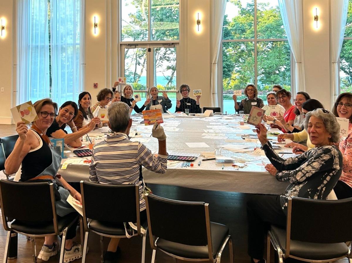 September was an active month – we started out staffing a table at the NSCI High Holy Day Pass Pick Up & Synagogue Fair. We really enjoyed chatting and connecting with people interested in WNSCI. Then the next day we assisted with and co-sponsored the Elul Challah Bake and Card Making, led by Laney Pressman, Cori Levinson, and Rabbi Lisa Greene – scroll down to see some photos of the event. We also had our first board meeting of the year, confirming plans for some wonderful programs. Please plan to join us this month for Sisters in the Sukkah! Scroll down for more information.