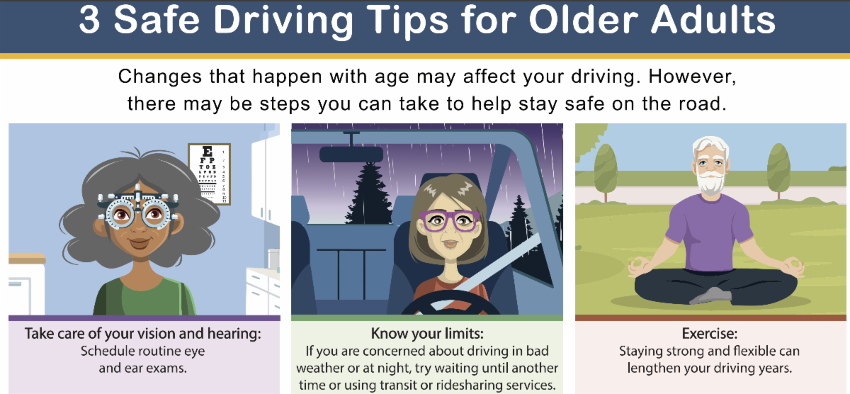Driver behaviors may also change in a positive way as we age and these changes can help protect us from serious injury and crashes. These behaviors include: