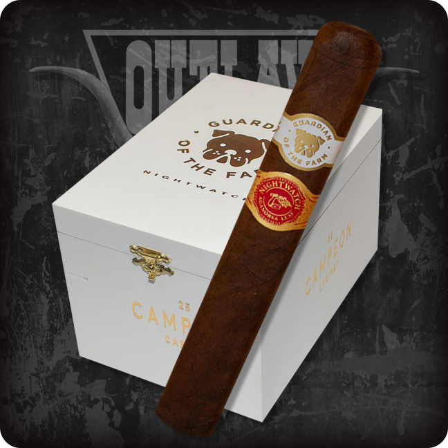 Guardian of the Farm Nightwatch is covered in an oily Corojo Maduro wrapper grown in Nicaragua by Aganorsa S.A. The all-Nicaraguan blend is said to be “more intense” than its predecessor, and uses only tobaccos grown by Aganorsa.
