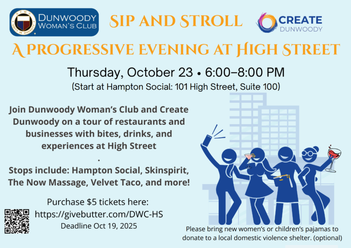 Membership Spotlight for October– Be sure to click the link under Highlights entitled Spotlight Member of the Month in the top left corner of the newsletter. Enjoy reading about Ann Smith who joined the Dunwoody Woman’s Club in 2017.