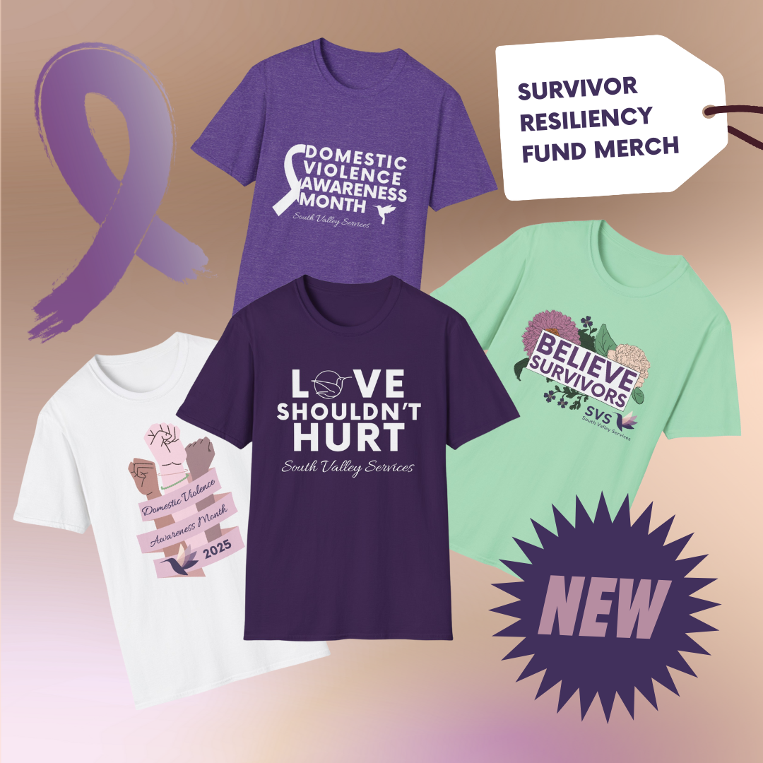 | | In addition to launching our new fund, we have also launched our Survivor Resiliency Fund Merch Shop! To help fuel this lifeline, we’ve also opened the Survivor Resiliency Fund Shop! Each week, we’ll showcase a new shirt, with every purchase directly supporting the resilience and healing of survivors. | | | |