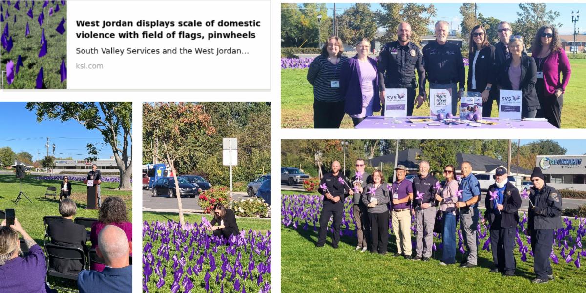 On October 6, we gathered with the West Jordan Police Department to mark the beginning of Domestic Violence Awareness Month. Together, we created a powerful display at Veterans Memorial Park: 1,229 flags representing the domestic violence calls received by the West Jordan Police Department in the previous year, and 520 pinwheels symbolizing the survivors who found shelter through our services.