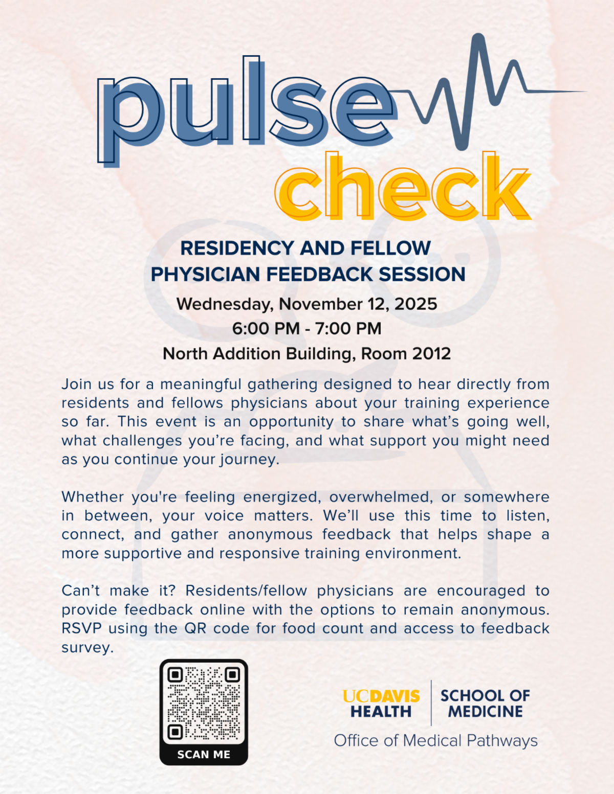 Join us for a meaningful gathering designed to hear directly from residents and fellows physicians about your training experience so far. This event is an opportunity to share what’s going well, what challenges you’re facing, and what support you might need as you continue your journey. Whether you're feeling energized, overwhelmed, or somewhere in between, your voice matters. We’ll use this time to listen, connect, and gather anonymous feedback that helps shape a more supportive and responsive training environment.