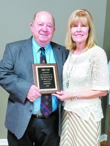 HONOR WITH PRIDE — To be chosen as the Pride of Obion County is an honor to be proud of in itself. Mike Cox, founder and owner of Cox Oil Co., was selected from several nominees for the award this year because of his giving spirit and desire to help as many people as he possibly can. The Pride of Obion County luncheon to honor Cox was held midday Wednesday, September 14th, and drew a packed room. Presenting Cox with a plaque to commemorate the accomplishment was CornFest board member Kris Dunn.