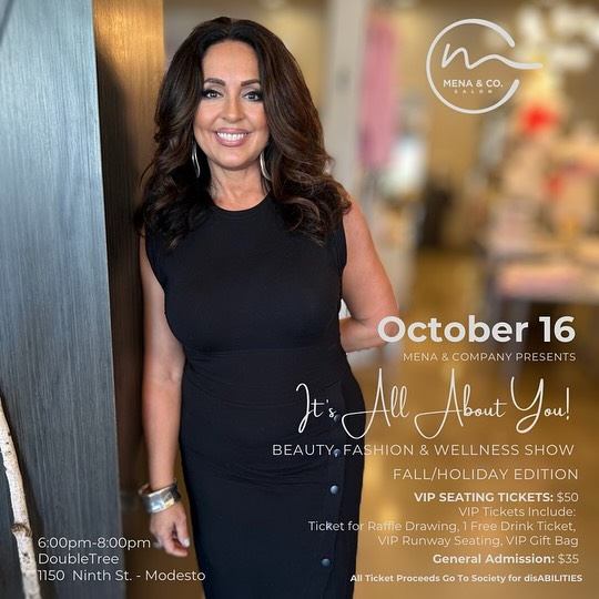 We are deeply grateful to Mena & Co. for choosing Society as the beneficiary of their “All About You” event coming up on October 16. Beauty, Fashion, and Wellness is the theme for this festive and fun evening at the Double Tree. Tickets are available at Event Brite – please join us for a great evening where ticket proceeds are donated to Society!