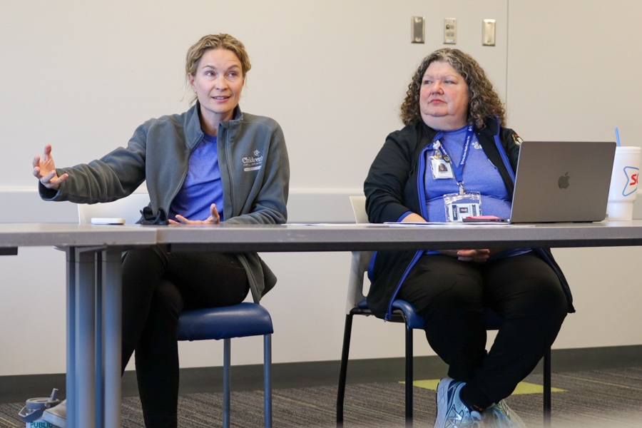 For parents, family night included two educational sessions. Laura Maskin, MD, associate professor, Division of Hospital Medicine and Mitzi Cardona, asthma program manager at Children's Nebraska, presented information and answered questions on asthma and allergy management. Sharon Stoolman, MD, chief, Division of Hospital Medicine, and Beatrice Egboh, MBBS, assistant professor, Division of Developmental Medicine, led a discussion of behavioral health concerns.
