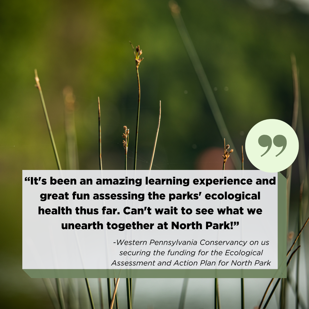This September, the Upper Allée Meadow at Round Hill Park was seeded with the support of our partner, Allegheny County Parks. This 3.5-acre meadow was graciously funded by EQT Corporation and supports recommendations in our Ecological Assessment and Action Plan for the park. Meadows are an important part of our work with Allegheny County Parks. By replacing traditional mowed lawns with diverse native grasses and wildflowers, we create habitat for pollinators like bees and butterflies and provide natural stormwater management as rain infiltrates into the soil. This new meadow also continues the green infrastructure started last year with the Visitors Center Rain Garden, bringing more sustainable beauty to Round Hill Park. We can’t wait to watch this meadow grow and thrive for both people and wildlife!