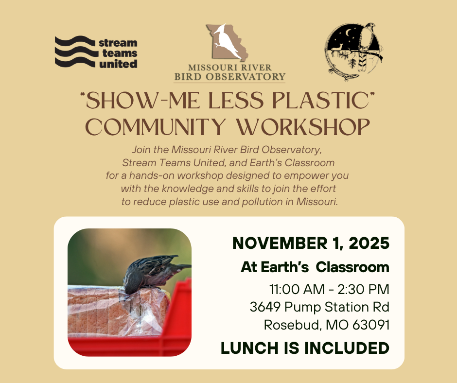 10/25 - Jefferson City, MO - The Missouri River Bird Observatory hosted a Plastic Brand Audit at Bonnots Mill River Access following Missouri River Relief's river cleanup (bottom center).