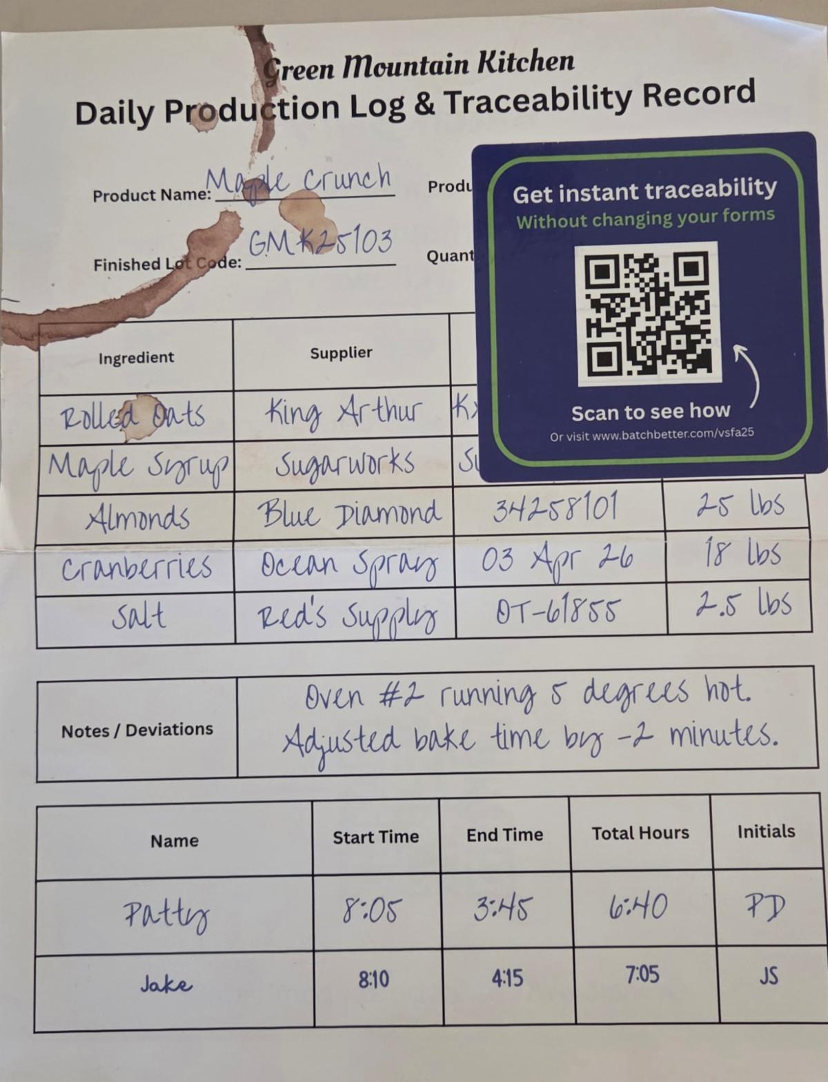 Batchbetter.com has created an easy-to-use daily production & record system for each lot. They take your handwritten (coffee stained?) production sheets turning them into easily accessed digital records.