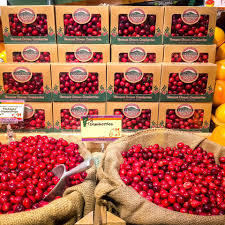 Pumpkin Village Foods will deliver the cranberries to stores along their routes. Berries are available in retail packaging or bulk (in 5lb increments, 15lbs/box).