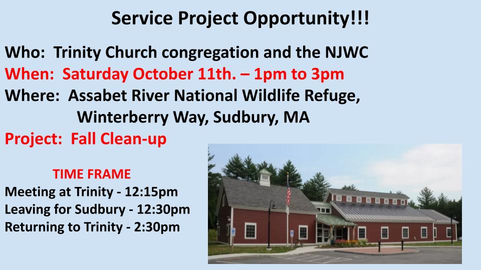 - Maybe other Trinity folk would like to join them! John and Grace will present an information session after worship on Sunday, October 26, 2025. More details coming!!!
