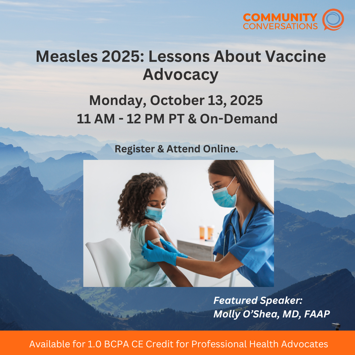 October 13 – Community Conversation: Measles 2025 Lessons About Vaccine Advocacy