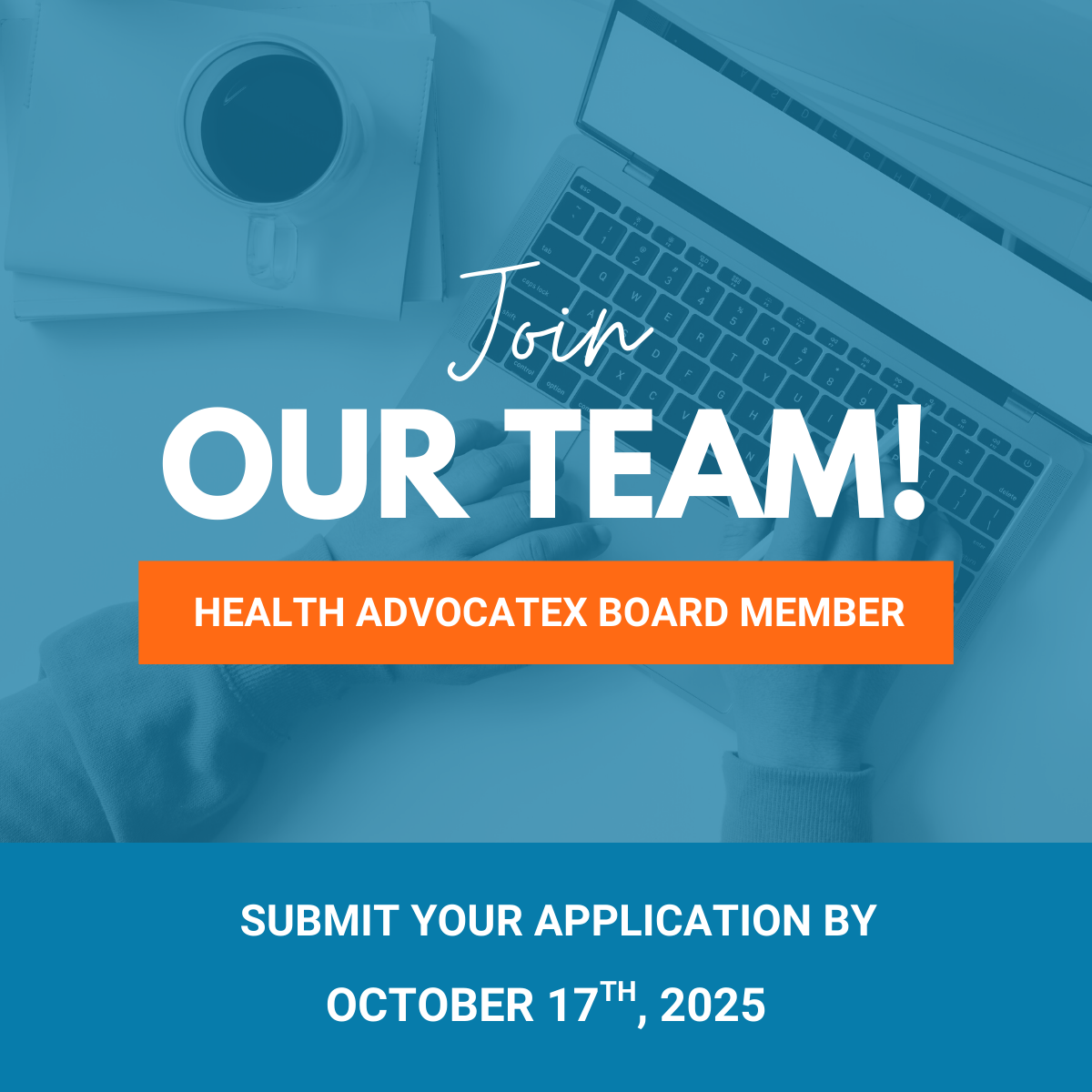Submit the form and your resume to info@healthadvocatex.org by October 17, 2025.