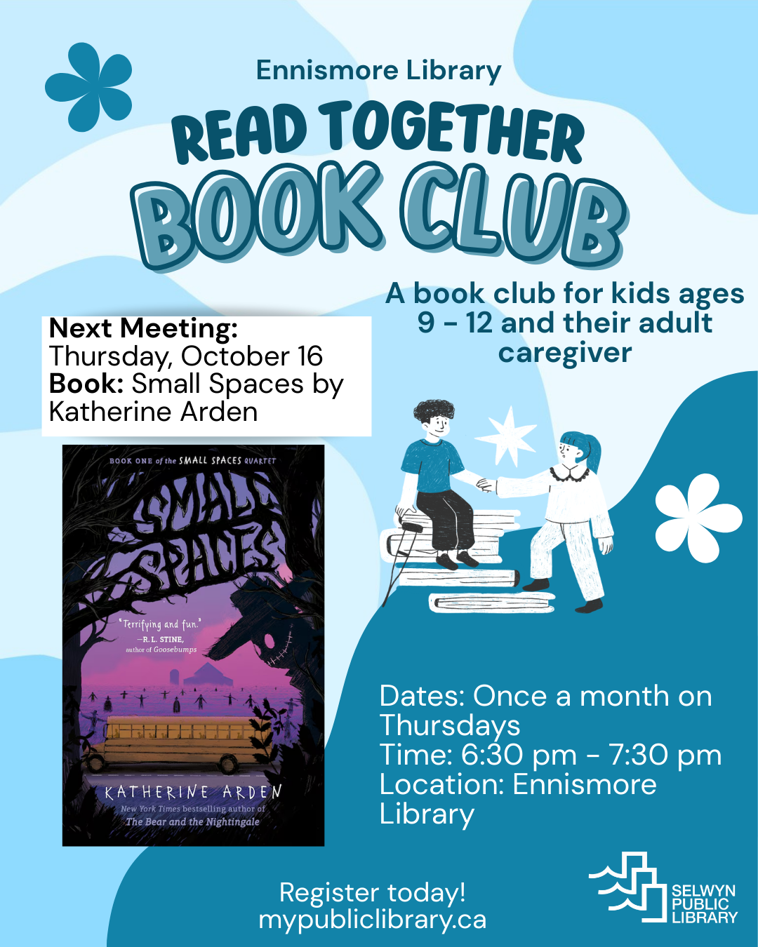 Share great books and meaningful conversations in this monthly book club for kids ages 9-12 and their caregiver. Each month we’ll read a new title and come together for a relaxed discussion and activities. All reading levels welcome.