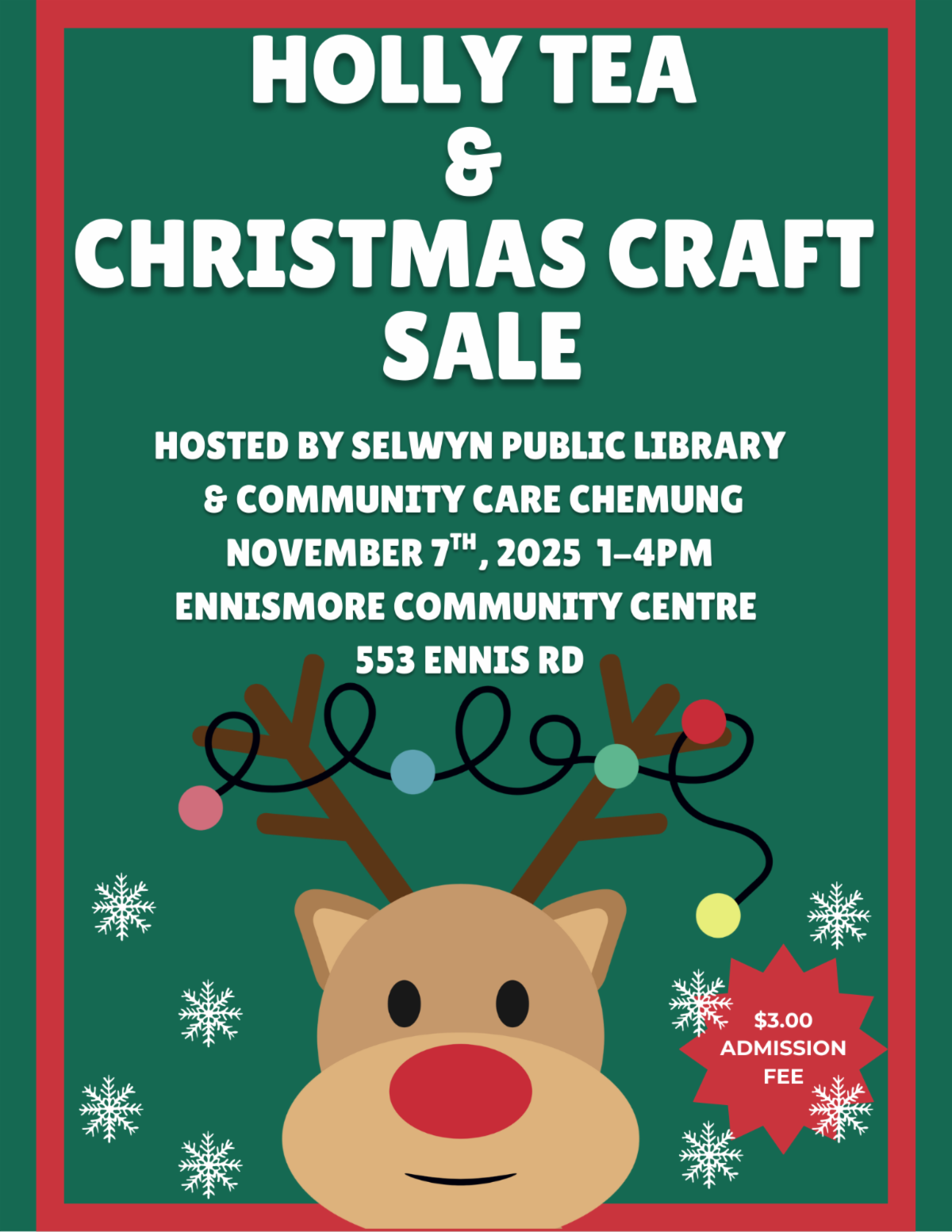 Join the Selwyn Public Library and Community Care Chemung for this lovely Holly Tea and Christmas Craft Sale featuring local vendors.