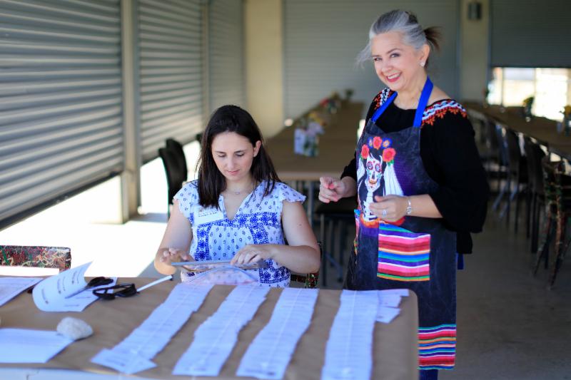 Veronica Hackett and Lacy Finley preparing to welcome our guests.