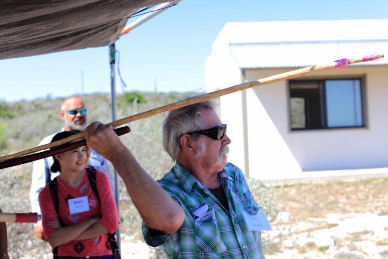 Charles shows the cooked lechuguilla heart before handing it over to Amanda to prepare for everyone to taste.