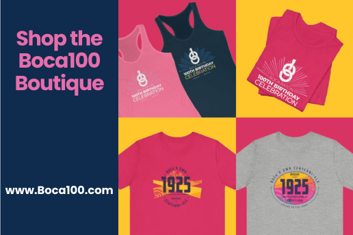 Shop the Boca100 Boutique for exclusive Centennial merchandise, including shirts, hats, golf gear, drinkware and limited-edition keepsakes that commemorate this historic milestone. Check back often for new items!