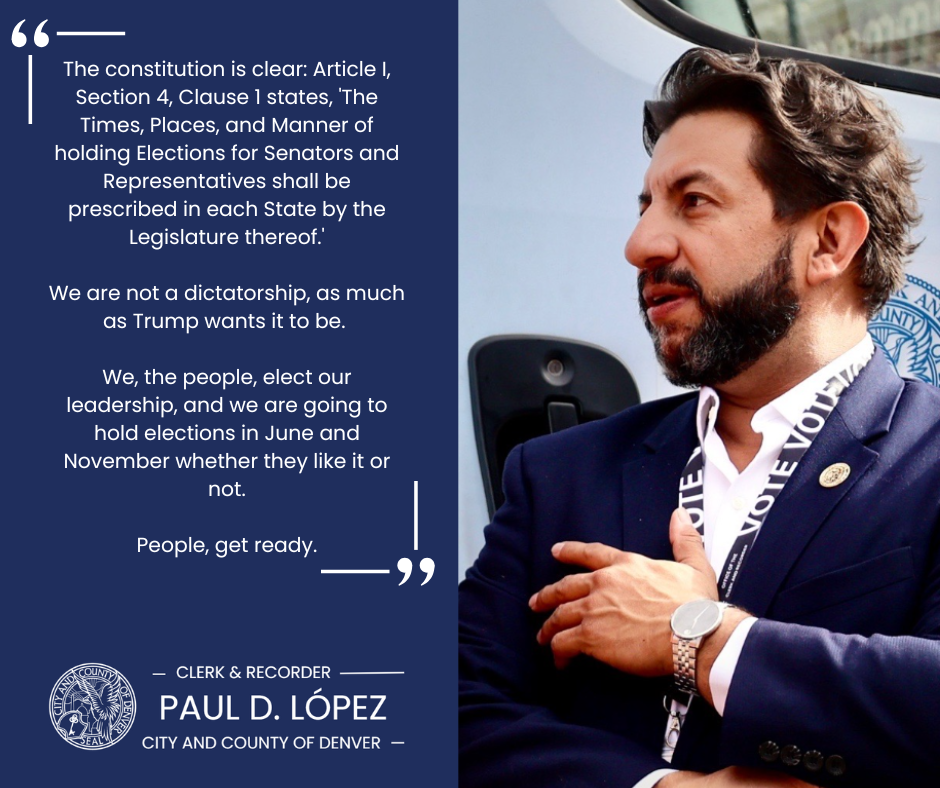 It is my responsibility as Denver’s chief elections official to ensure that our elections are accessible and secure, and I will not tolerate attempts to interfere with or intimidate voters; and will enforce the full power of the constitution and the law.