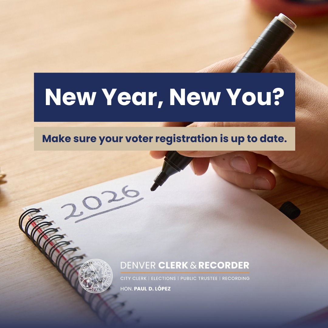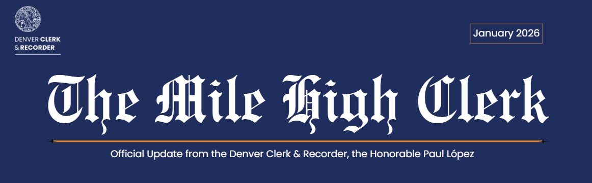 We also begin 2026 with an important update: All Denver Clerk & Recorder services are now consolidated under one roof! As of Dec. 29, all Recording and Public Trustee services — including marriage licenses, land recordings, deeds of trust, foreclosure services and other legal filings — have moved to our main office at 200 W. 14th Ave., the longtime home of the Denver Elections Division. Services remain unchanged, and residents can continue to count on the same high-quality services from our experienced team.
