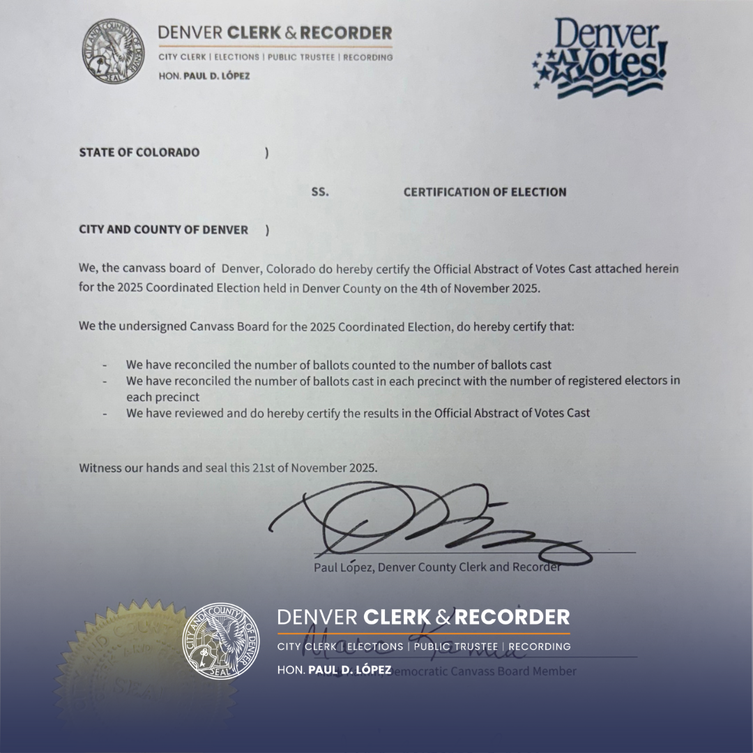 After months of public advocacy, the Denver City Council voted unanimously on November 3rd to restore an additional $2.7 million to our budget citing the importance of independently ran elections. While this is $1 million short of what we originally requested, I am confident that this, combined with our own voluntarily budget cuts ensures we have the sufficient resources necessary to successfully administer both the 2026 State Primary and 2026 General Midterm elections.