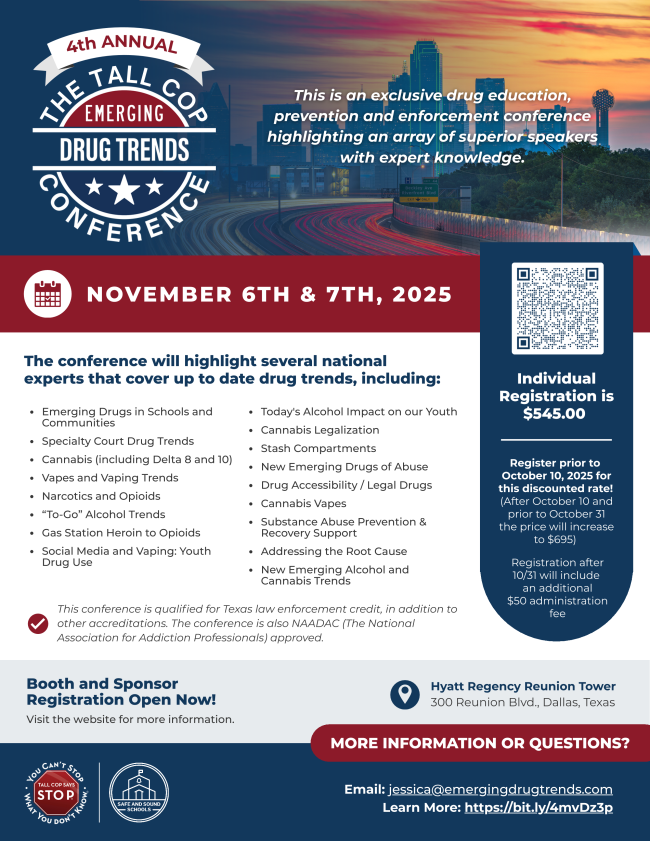 marking an exciting new chapter in combating substance abuse as we join forces to co-host the 2025 Tall Cop Emerging Drug Trends Conference, formerly known as the National Emerging Drug Trends Conference.