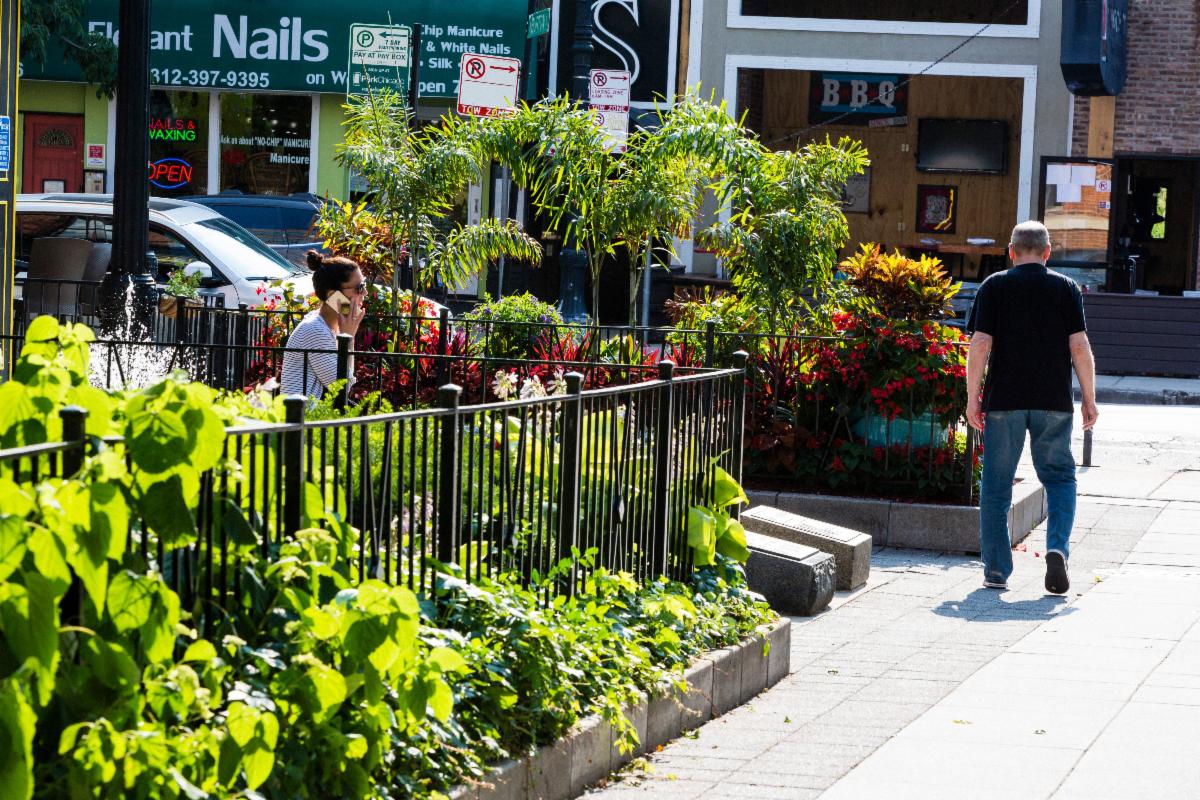 Old Town’s SSA is focused on keeping Wells Street a well-functioning business district. While part of that means a litter abatement team to pick up litter on the sidewalks and private security to help retailers, it also means beautification. SSA 48 Old Town hires a landscaping company to plant throughout the year: springtime bulbs, summer tropical plants, and autumn mums. They also pay for holiday decorations on the streetlight poles and for the annual tree lighting in Burton Place Park.