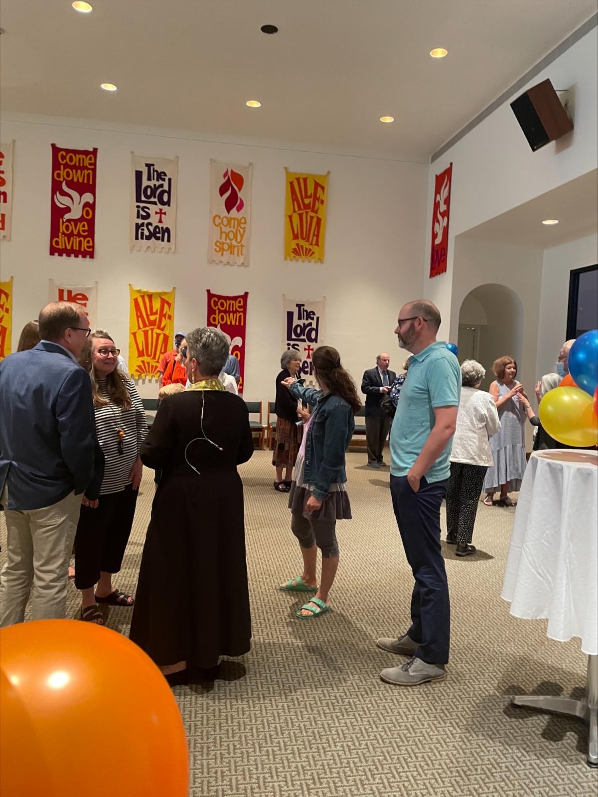 On August 7, after the 10 am worship service, many gathered in the Weist Room for a reception to say goodbye to Rev Kate Shaner. After about 15 years of service to First Community, Kate is embarking on the next part of her life’s journey. Family, friends, and congregants in the worship service were moved by her final address from the pulpit. She touched on the generosity of First Community and shared her love for us all. In his sermon, Glen appropriately preached about how fear limits us. We all experience anxiety and fear when on the precipice of a transition stage. We wish Kate the courage to move forward and imagine all the possibilities for her life, knowing she will continue to serve her fellow humans no matter what she does.
