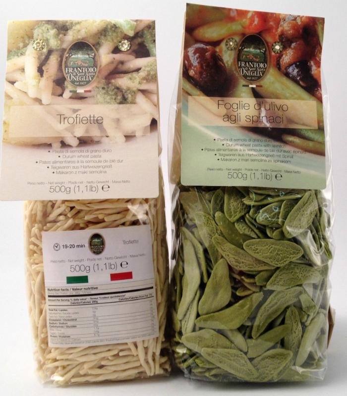 | Announcing Trofiette and Foglie d'Olivo pasta from Liguria. The Trofiette is ever so slightly smaller than the Trofie we formerly carried. It is perfect for Pesto and our favorite choice is Trentasette Red Pesto with Truffles.