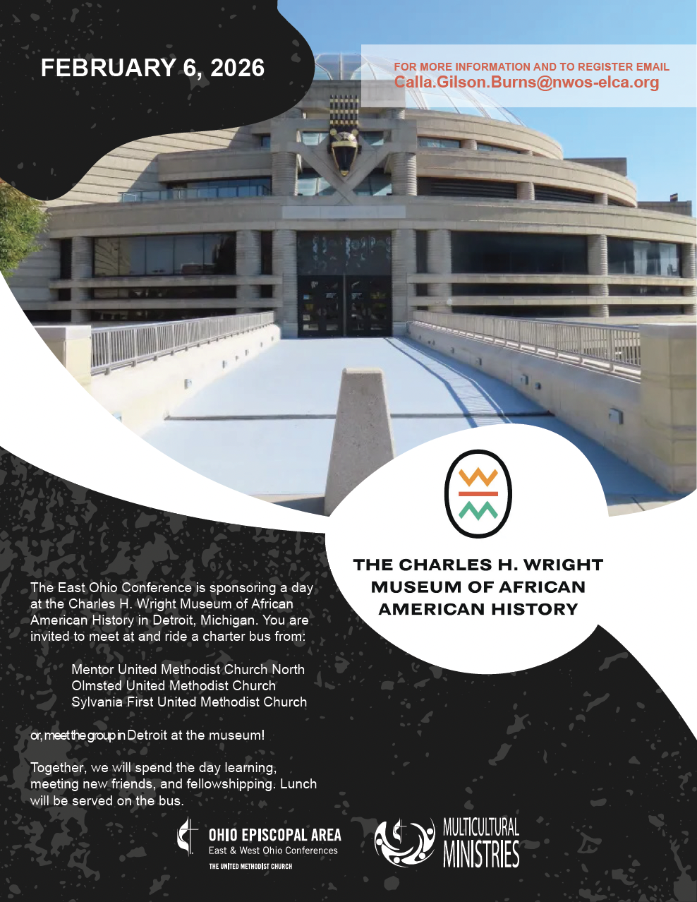 Join fellow Christians on a journey to Detroit to explore the Charles H. Wright Museum of African American History! The bus will pick up at three locations and lunch will be provided! Registration will come in January. For now, please email calla.gilson.burns@nwos-elca.org to express interest.