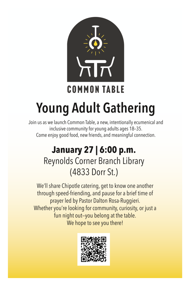 Join us as we launch Common Table, a new, intentionally ecumenical and inclusive community for young adults ages 18-35.
