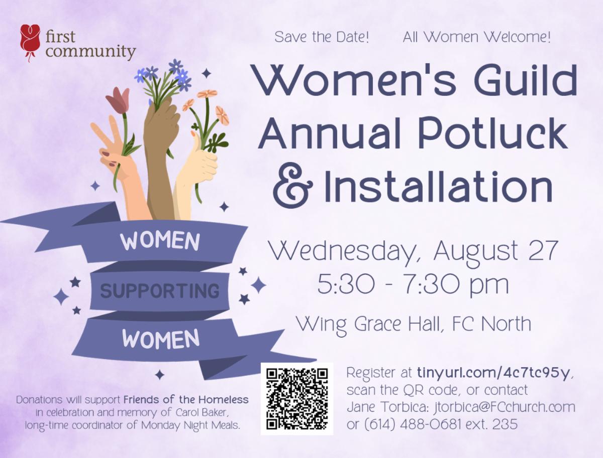 The Women’s Guild Annual Potluck and Installation on Wednesday, August 27 will honor Carol Baker, the first volunteer and founder of the Monday Night Meals ministry.