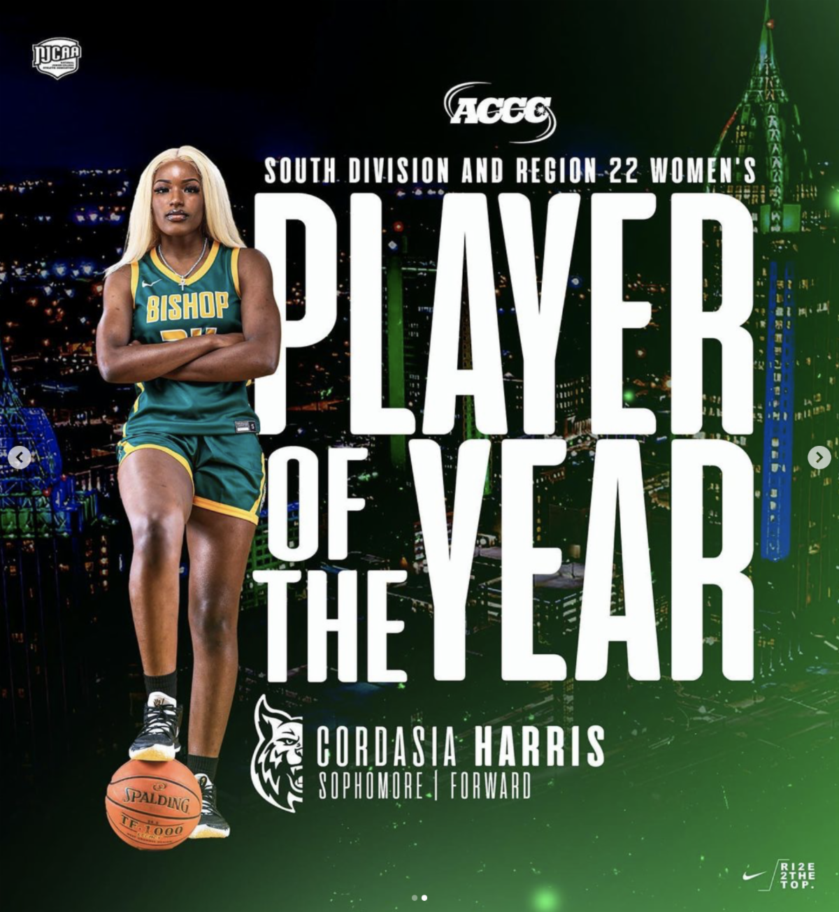 Congratulations to Cordasia Harris for being named ACCC Player of the Year!