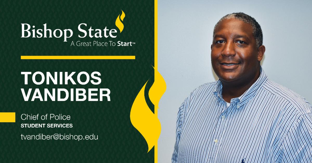Tonikos Vandiber is the new Chief of Police. He is a native of Birmingham, Alabama, and was last employed at Miles College. Vandiber earned his bachelor's and masters of science degrees in criminal justice from the University of Alabama. His professional accomplishments include completing the Alabama Peace Officers Standards and Training certification and the Alabama Law Enforcement Executive Certification. His hobbies include golf, fishing, hunting, traveling, reading, and watching sports.